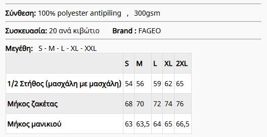 Ζακέτα fleece με φερμουάρ και δύο πλαϊνες τσέπες , ειδικής ύφανσης υλικό το οποίο δεν χνουδιάζει .