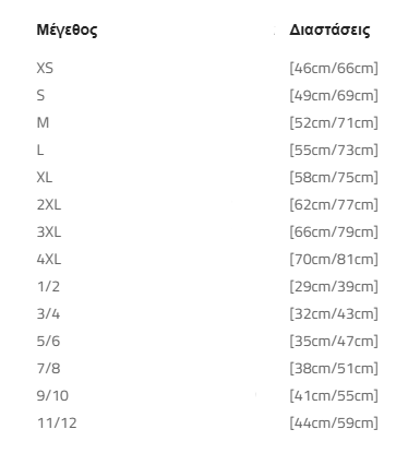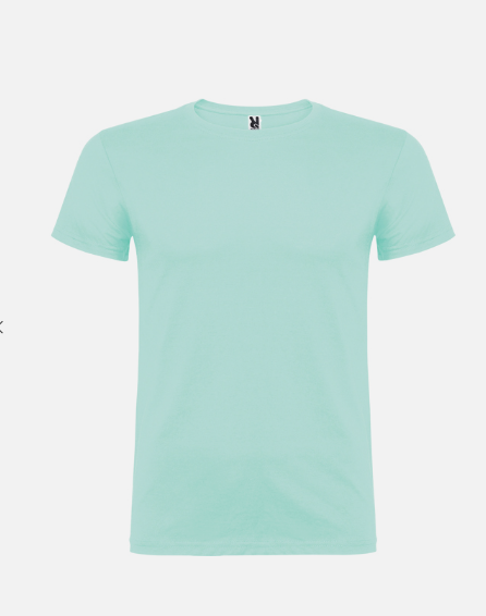 Κοντομάνικο μπλουζάκι, με διπλή, στρογγυλή λαιμόκοψη, με ενισχυτικά εσωτερικά γαζία, χωρίς πλαϊνές ραφές, πλην των παιδικών μεγεθών που διαθέτουν πλαϊνές ραφές.